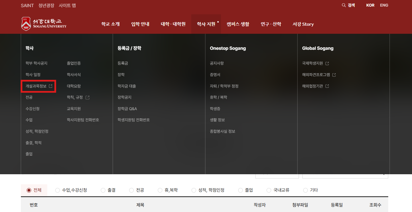 [서강대 모든 개설 과목 조회]