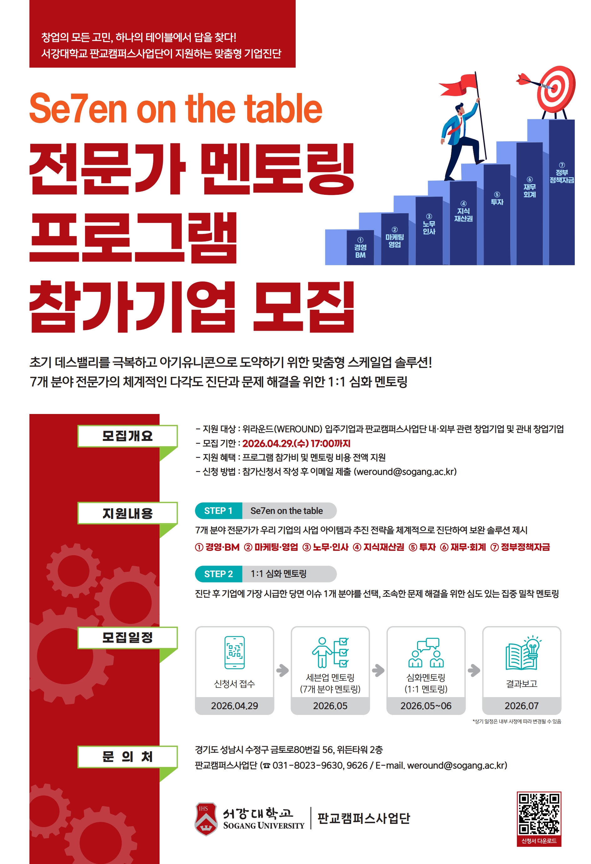 2026 서강 se7en on the table 전문가 멘토링 프로그램 (1회차) 참가기업 모집(~4.29)